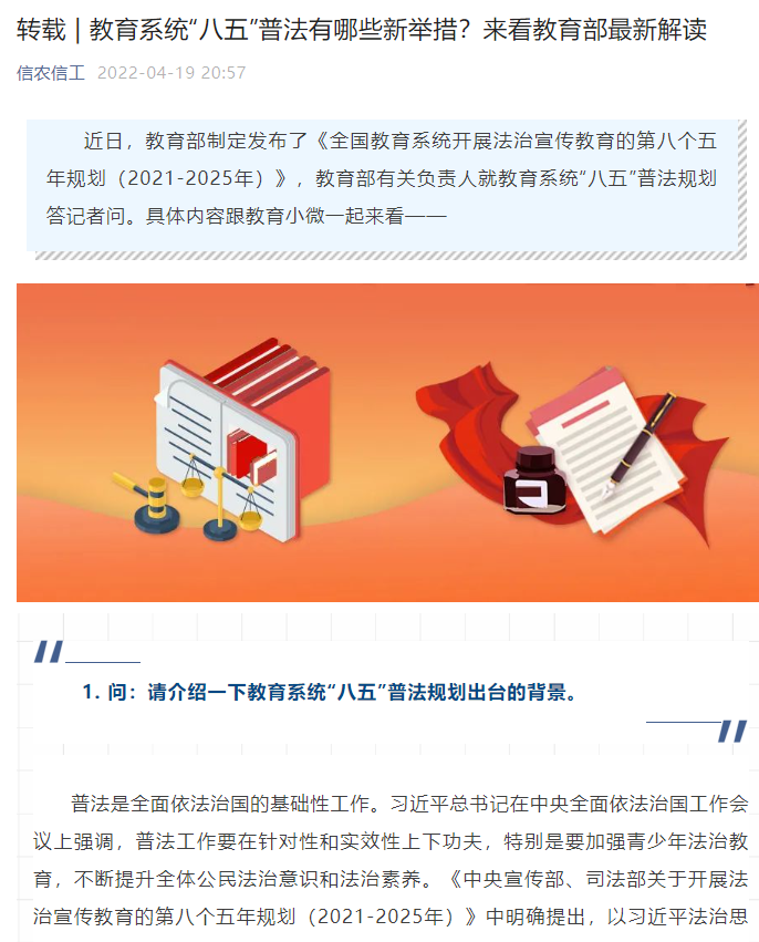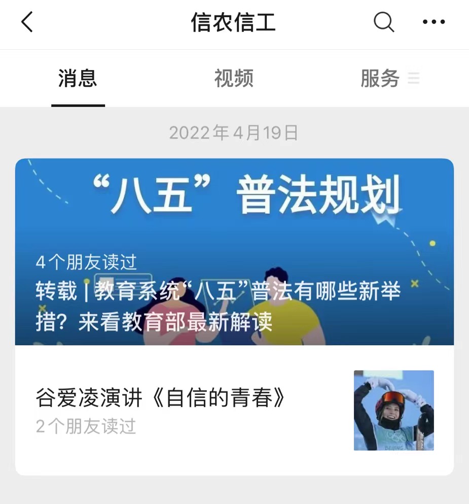 通过微信公众平台向学生推送有关法治宣传教育相关内容,让学生了解相关法律法规知识,增强自己的法治意识,为维护校园和谐稳定打下了基础。