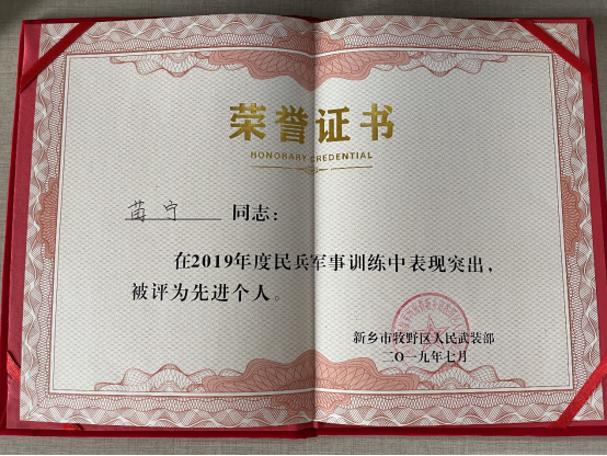 2018年,该生作为志愿者参加了信阳国际马拉松比赛并圆满完成赛事志愿服务。2019年暑假,该生主动报名参加新乡市牧野区武装部民兵训练任务,最终在民兵考核时成绩优异,在总结表彰大会上获得了先进个人荣誉称号。2020年,该生积极向所在社区捐款支持抗击新冠肺炎疫情工作,还积极到信阳市区参与卫生清洁志愿活动。2021年,该生突出重围,在河南省新乡市选调生中被录用,为学生生涯交上了一份满意的答卷。习近平总书记提出“现在,青春是用来奋斗的;将来,青春是用来回忆的”,他愿意秉承信农人踏实奋进、锐意进取的优良传统,争取在以后的工作和学习中创造更加辉煌的成绩!