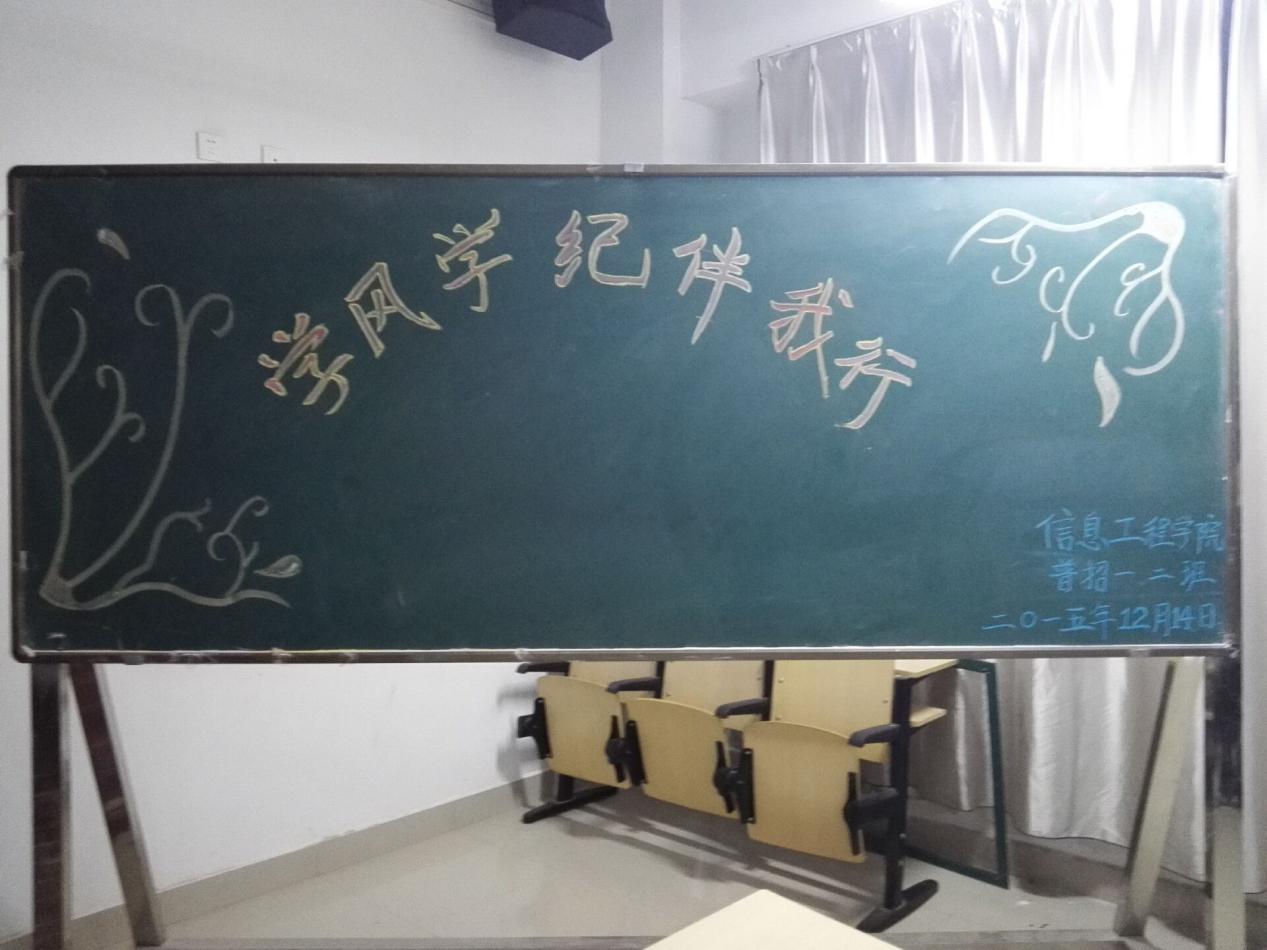为了进一步强化信息工程学院课堂教学秩序,严肃课堂教学纪律,提高课堂教学效率和质量,树立良好的学风,凝聚班级学风,营造积极学习氛围。 2015年12月14日晚7:00,信息工程学院各班级在二教201、202、205、206、215、216、217分班开展了以"学风学纪伴我行"为主题的班会活动。