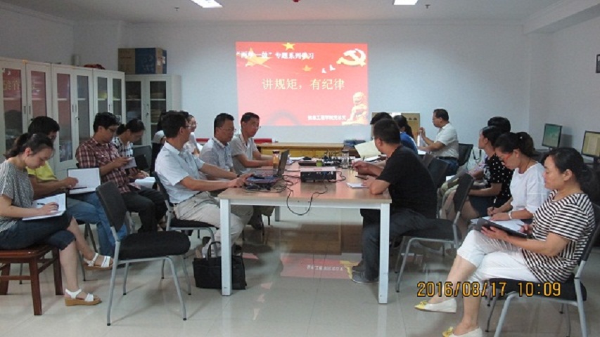 8月17日上午10:00,信息工程学院党总支在行政楼921召开了“两学一做”学习教育第二专题“讲规矩、有纪律”学习研讨会。会议由学院党总支书记胡凤堂主持,全体教工党员参加了会议。会议由学习、研讨两部分组成。